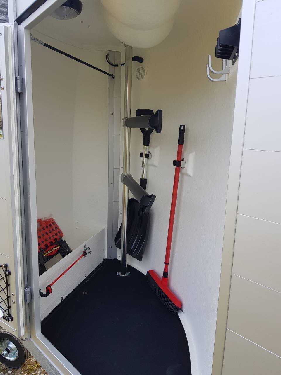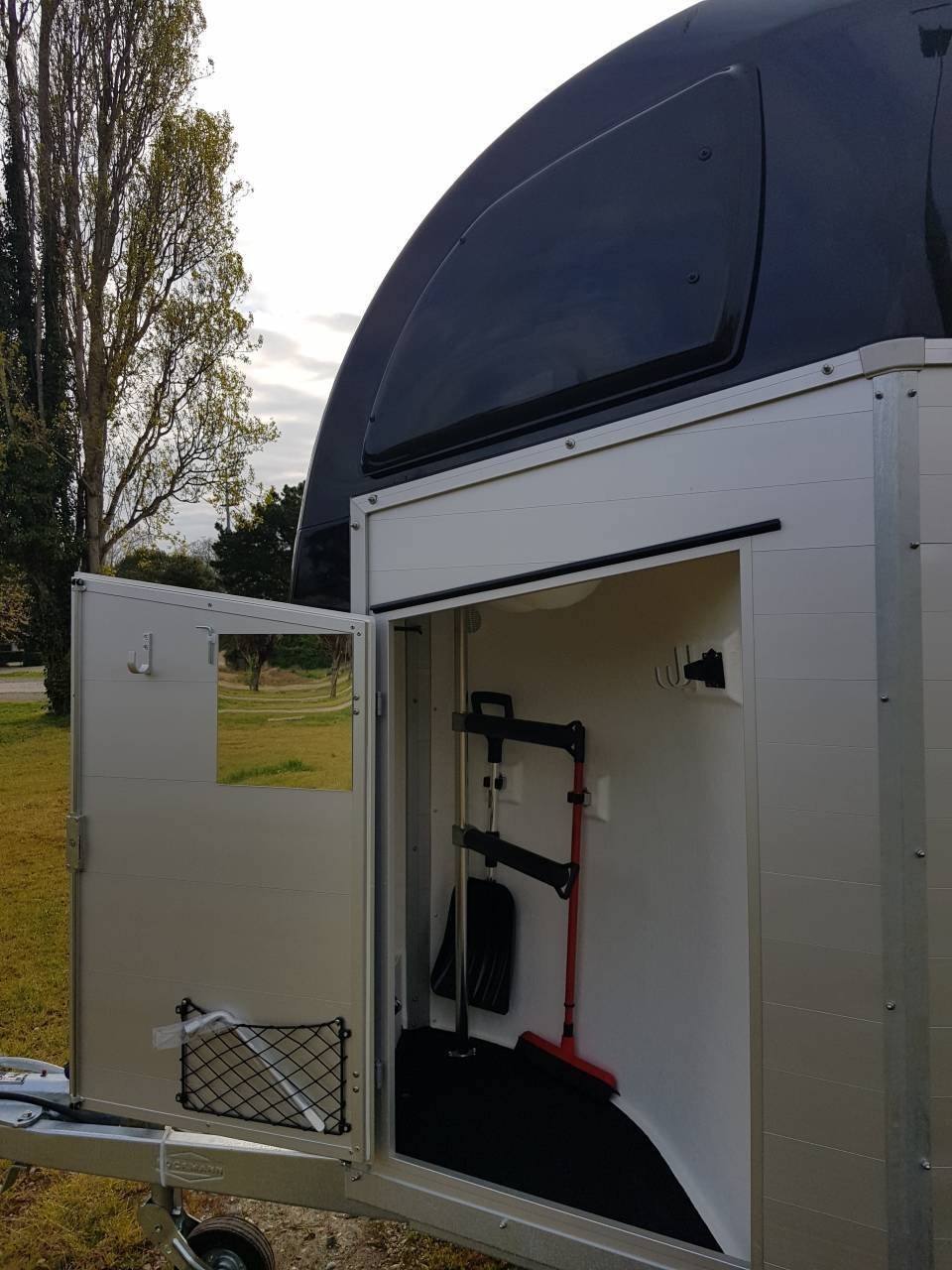 • Sellerie avec porte-selles télescopiques, miroir, filet de porte, balai et pelle