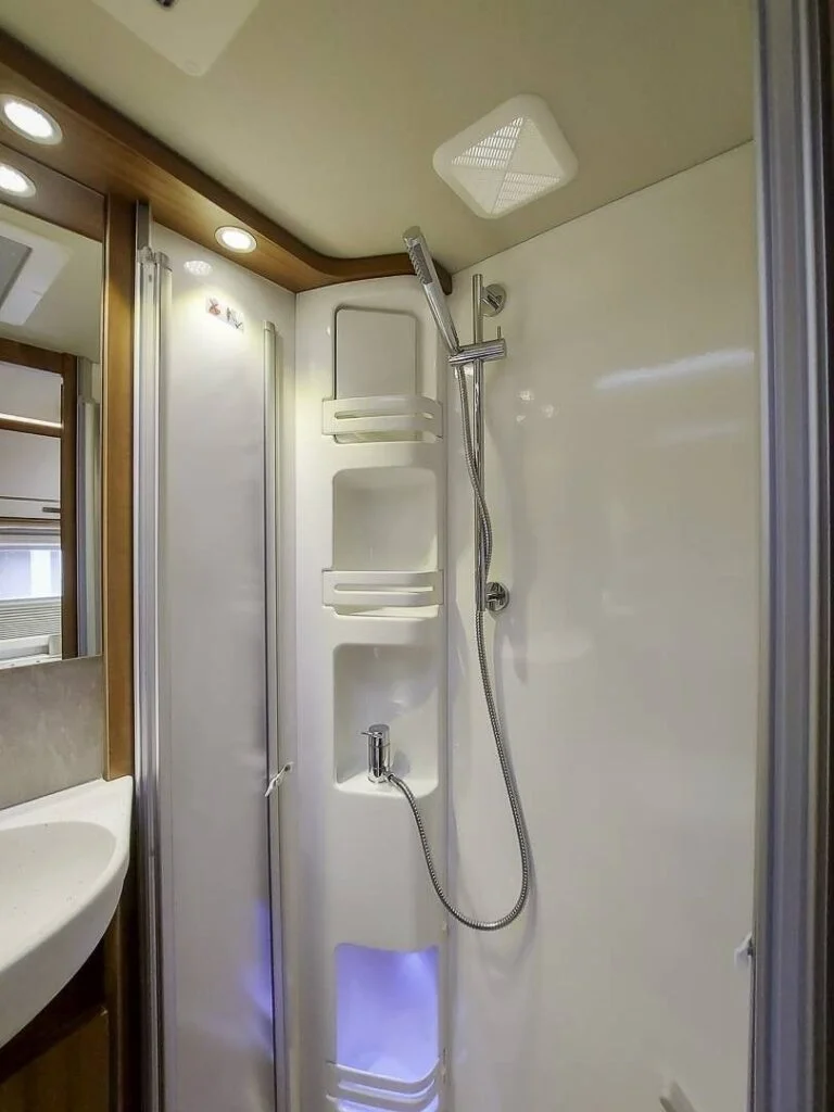 Belle voiture Hymer ML-I 580 entièrement intégrée qui fonctionne bien avec un solide moteur de 163 ch, une boîte de vitesses automatique à 7 rapports et une traction arrière. Meublée de deux lits simples à l’arrière et d’un lit escamotable à l’avant. Il s’agit d’un modèle 2016 immatriculé en octobre 2015. La voiture n’est pas très large donc elle est facile à conduire sur des routes étroites. Chauffage par chauffage à air Truma à l’électricité et au gaz. Caméra de recul, moustiquaire, stores dans le pare-brise, alarme gaz et navigation sont en place.