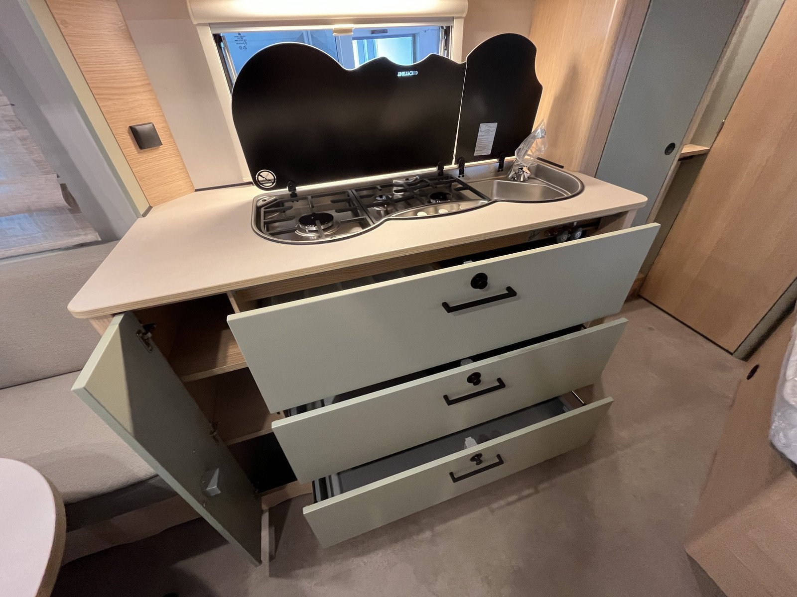 Très belle remorque avec lit français, possibilité de faire un lit double dans le salon, chauffage électrique au sol, douche, eau chaude, chauffage au gaz et électrique, batterie et chargeur, ventilateur 12v pour la distribution de la chaleur, grandes trappes de toit pour plus de lumière, préparée pour antenne TV/TV, porte moustiquaire, réservoir d’eaux grises, indicateur de réservoir d’eau douce, 2x prises USB dans le rail d’alimentation, préparée pour la climatisation y compris renfort de toit, poids de remorquage, jantes alliage noires etc.