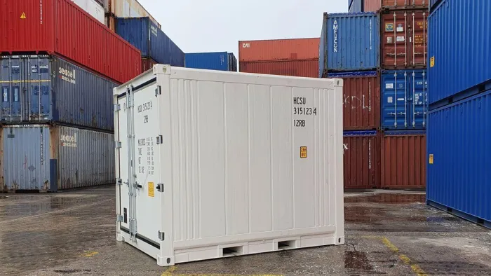 Le conteneur réfrigéré de 10 pieds avec machine Thermo King Magnum plus est le plus petit conteneur réfrigéré de notre gamme. Les reefers offrent une solution flexible en cas de pénurie d’espace de stockage réfrigéré ou congelé. Avec le reefer de 10 pieds, il est possible de refroidir et de congeler jusqu’à -40°C. De plus, le reefer 10 pieds permet de transporter et de stocker des marchandises jusqu’à +30°C. Nos conteneurs frigorifiques de 10 pieds sont approuvés CSC.