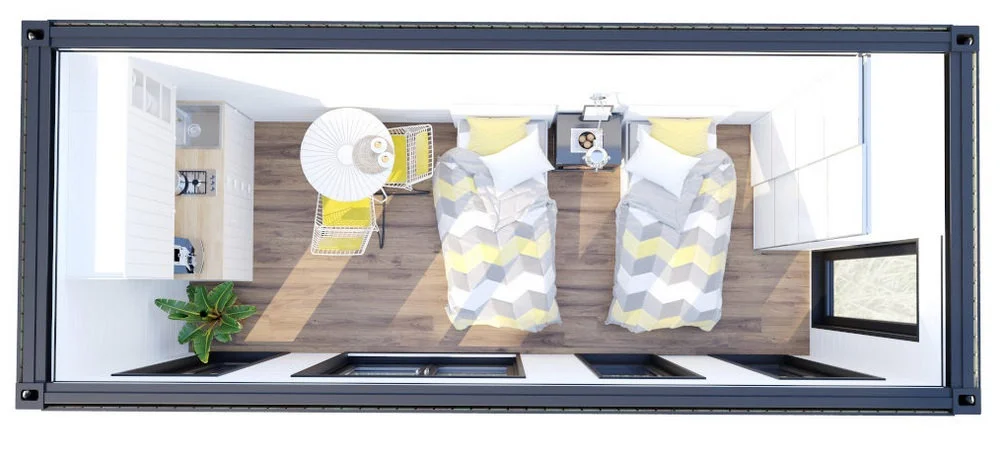 Le studio container V4 est une Tiny House intérieur aménagé et isolé ou extension de maison, qui est livrée prête à brancher.