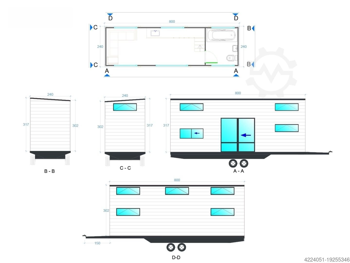 • Éclairage : éclairage d’ambiance sur les plinthes et les escaliers dans toute la Tiny House.
