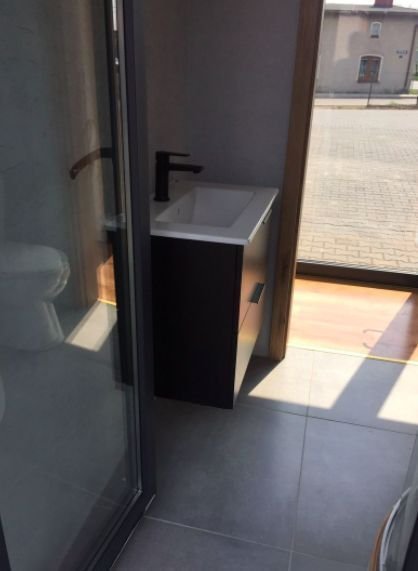 – Installation sanitaire : WC, lavabo avec meuble bas, douche, chauffe-eau
